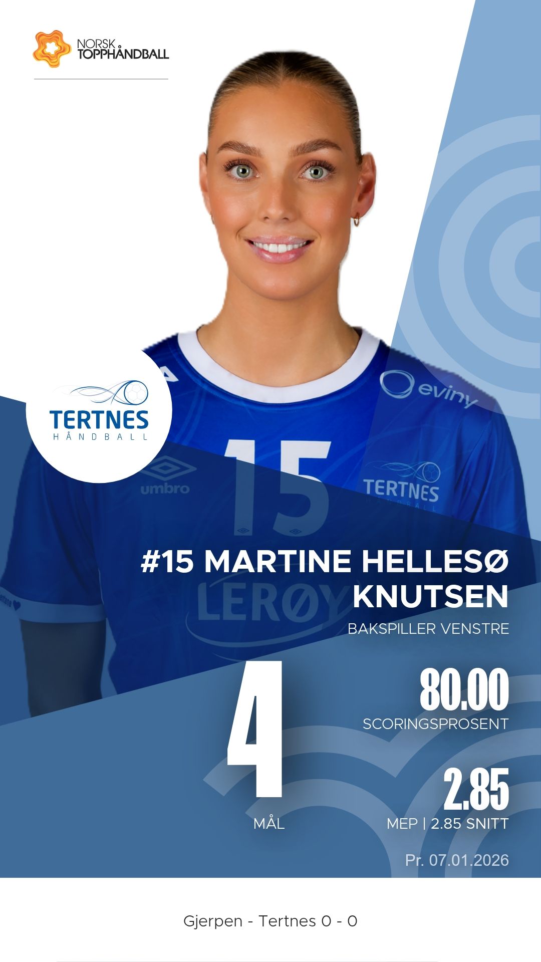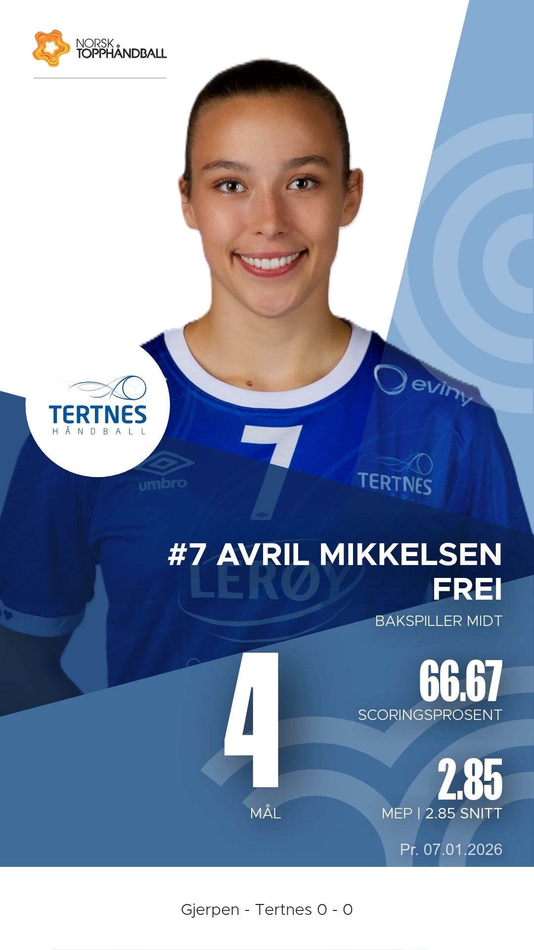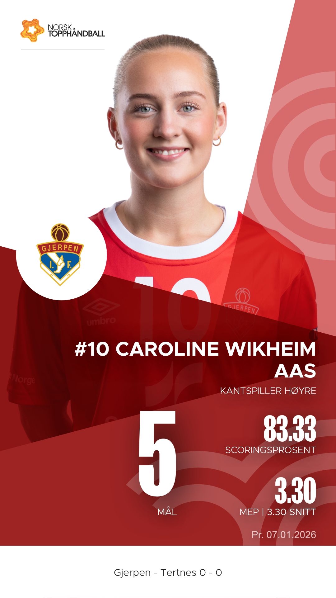 Gjerpen tok imot Tertnes Elite til kamp i REMA 1000-ligaen sesongen 2025–2026 i Skienshallen onsdag 7. januar 2026. Det ble en tett og intens duell der hjemmelaget presset gjestene hele veien, men måtte se poengene glippe til slutt. Pauseresultatet var 11–14, og sluttresultatet endte 24–26 i favør Tertnes Elite.
