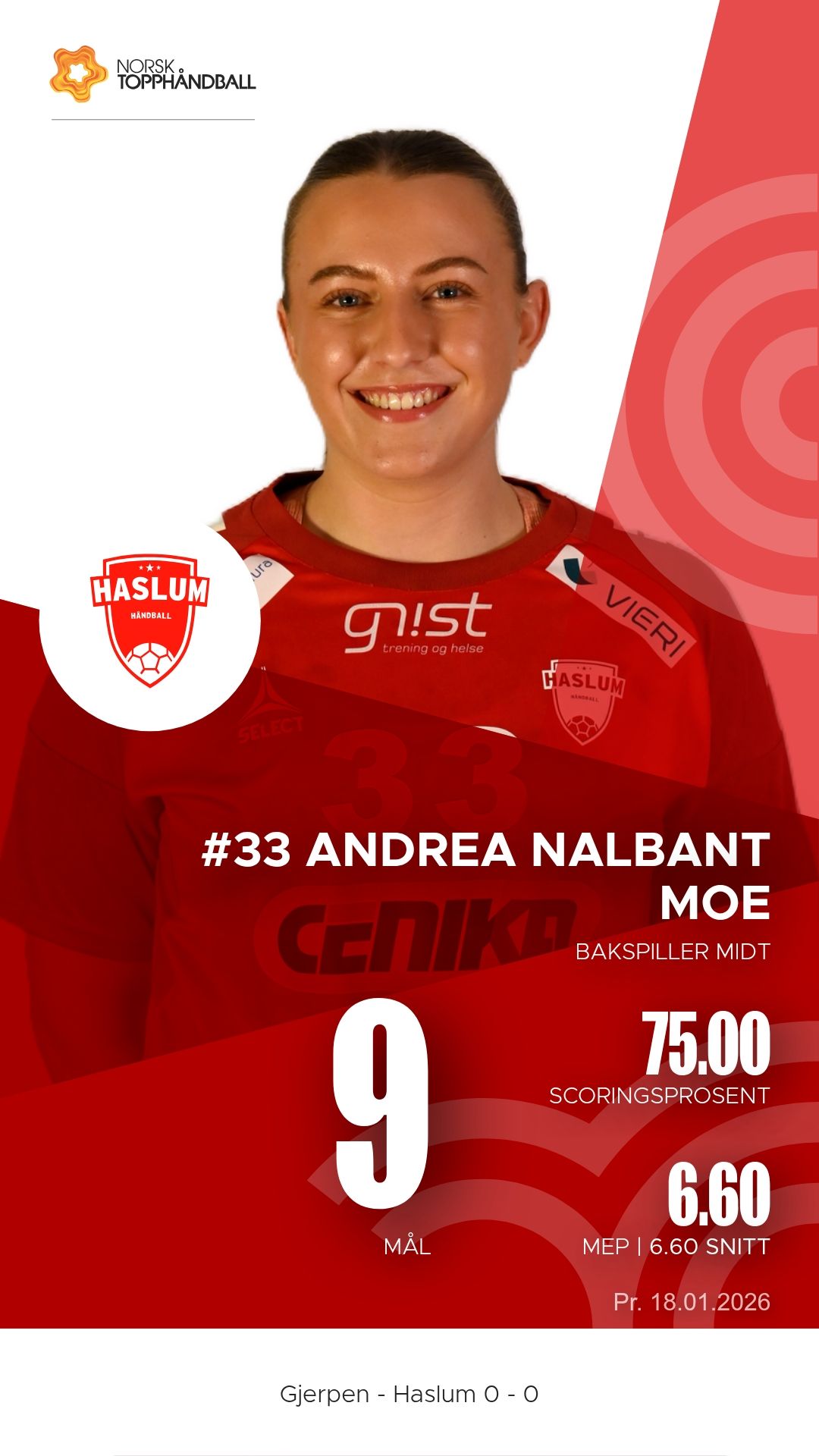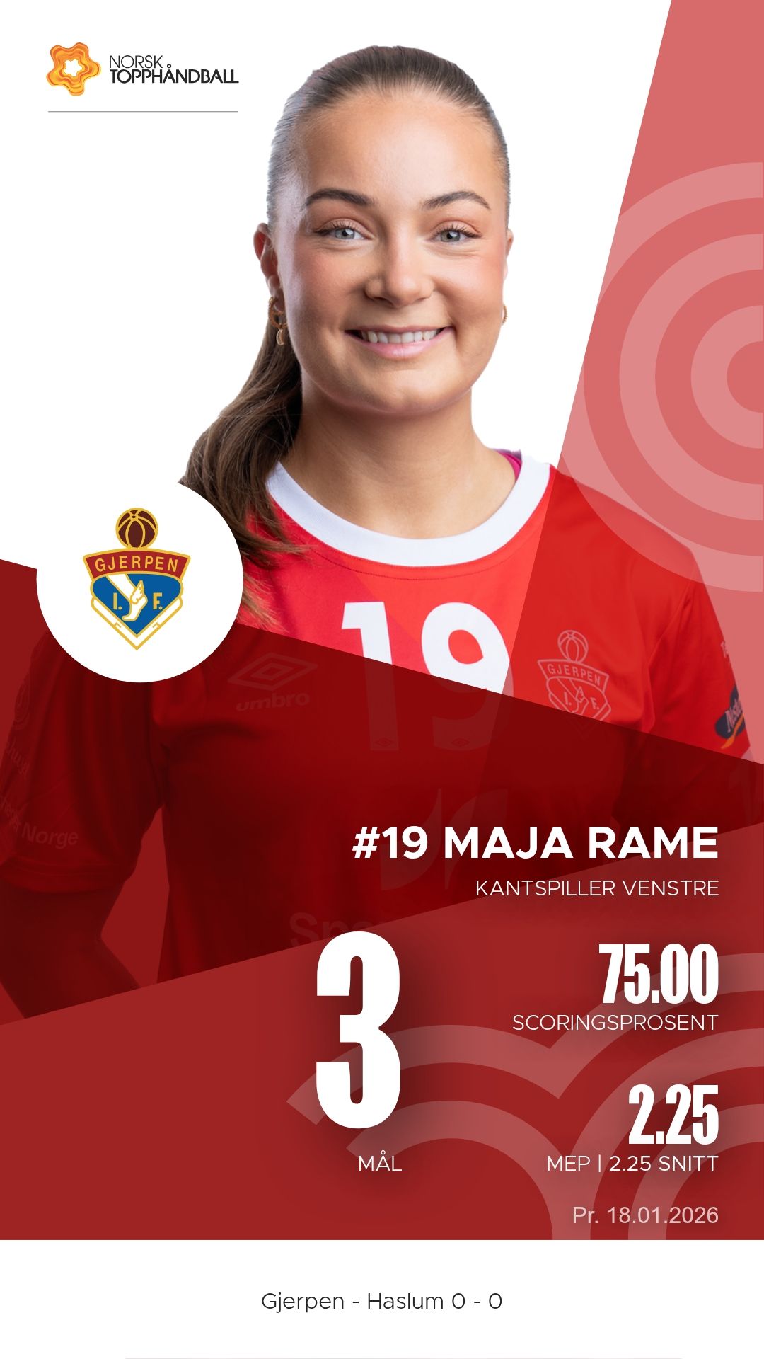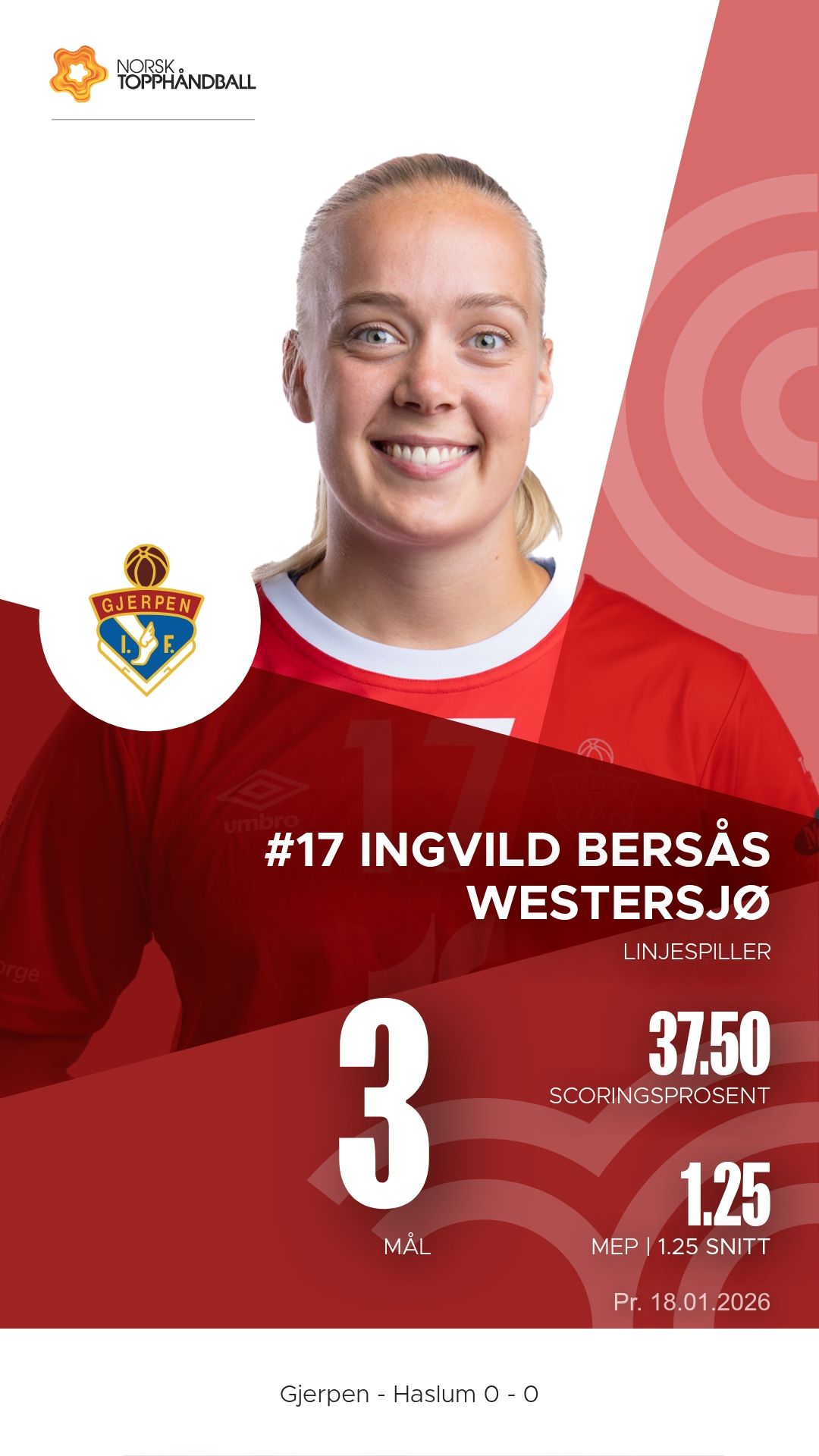 Lørdag 18. januar 2026 møttes Gjerpen HK Skien og Haslum Topphåndballforening til kamp i REMA 1000-ligaen i Skienshallen. Det ble en tett og intens duell der hjemmelaget viste vilje og trøkk, men gjestene fra Bærum dro til slutt det lengste strået. Stillingen ved pause var 10–15, og kampen endte 26–28.