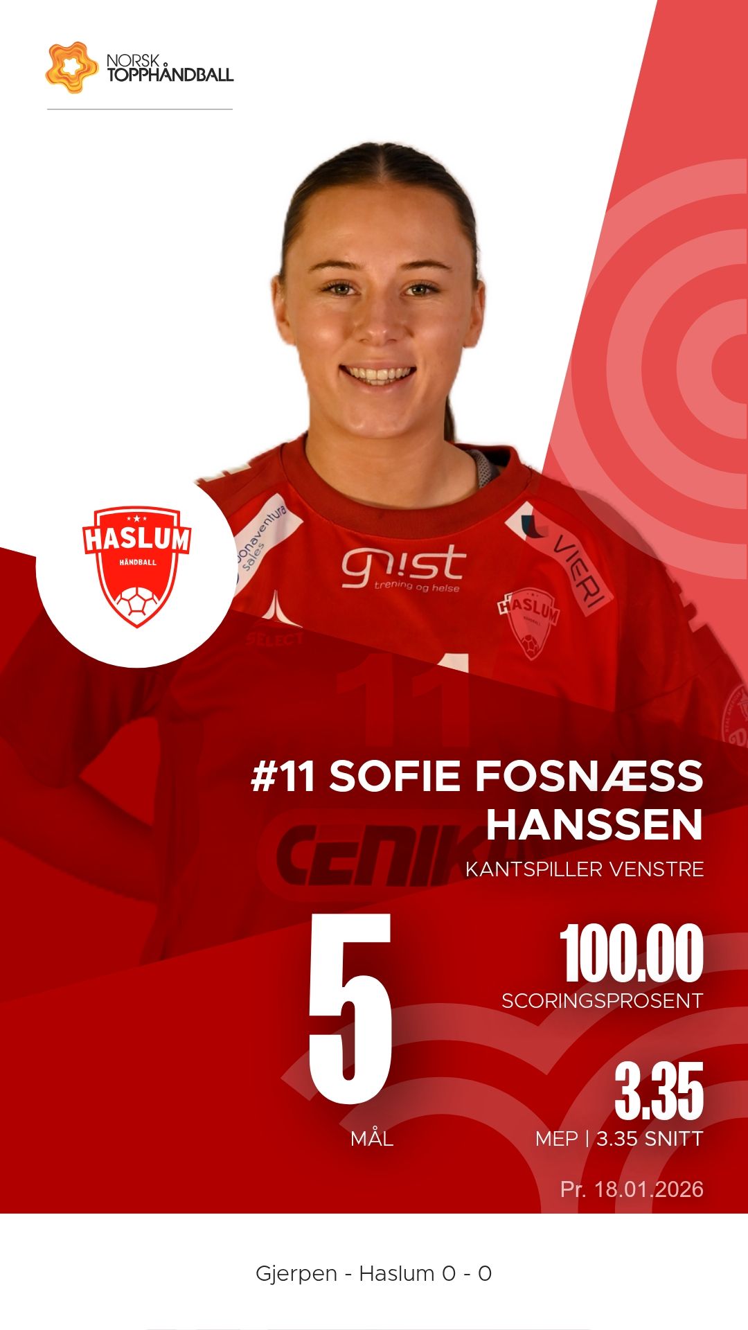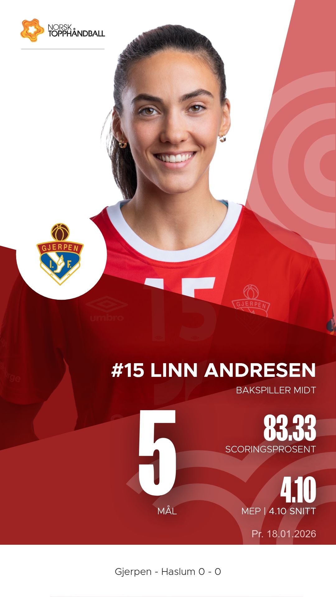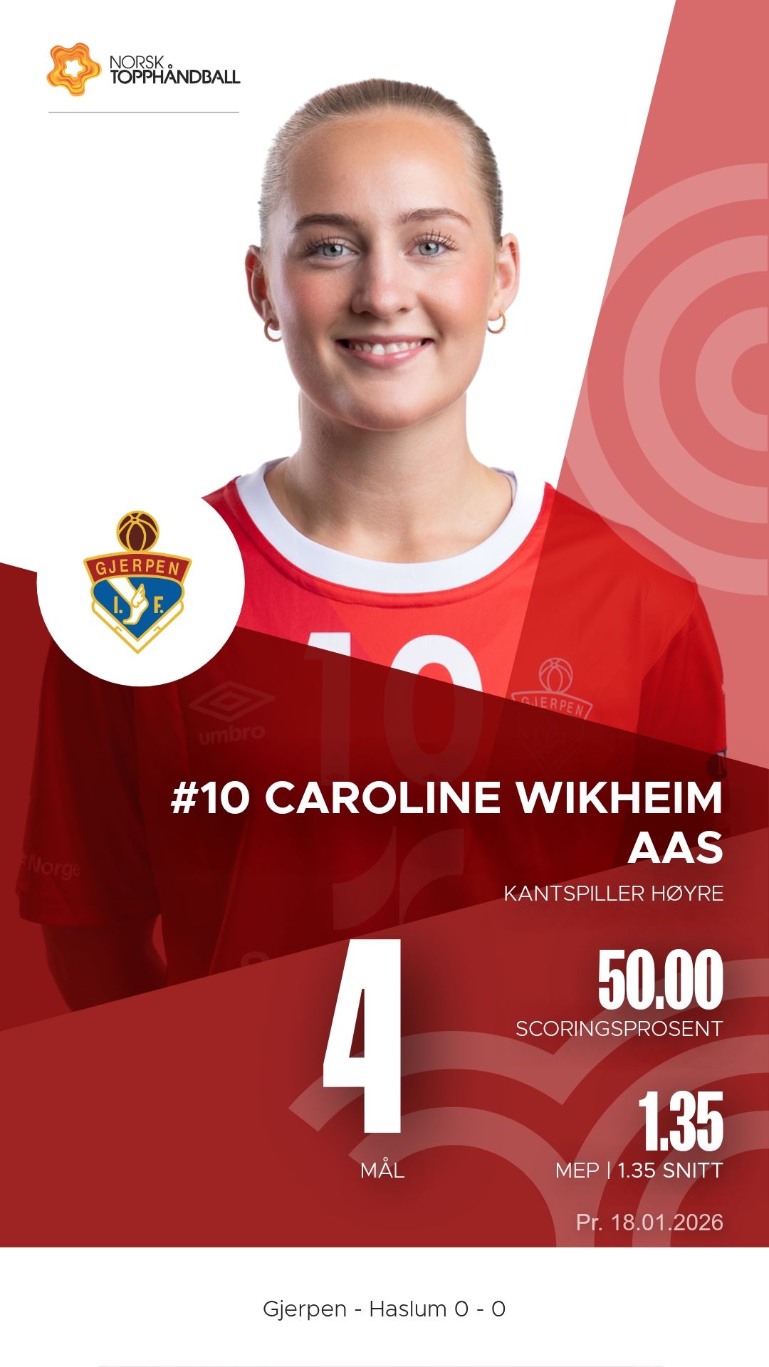 Lørdag 18. januar 2026 møttes Gjerpen HK Skien og Haslum Topphåndballforening til kamp i REMA 1000-ligaen i Skienshallen. Det ble en tett og intens duell der hjemmelaget viste vilje og trøkk, men gjestene fra Bærum dro til slutt det lengste strået. Stillingen ved pause var 10–15, og kampen endte 26–28.