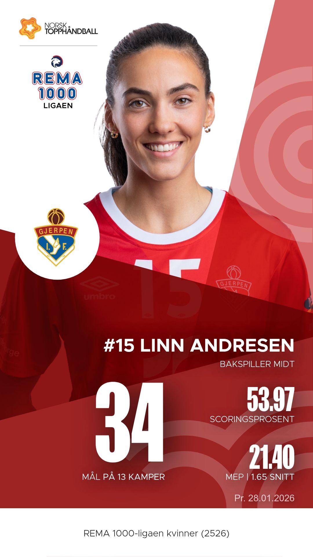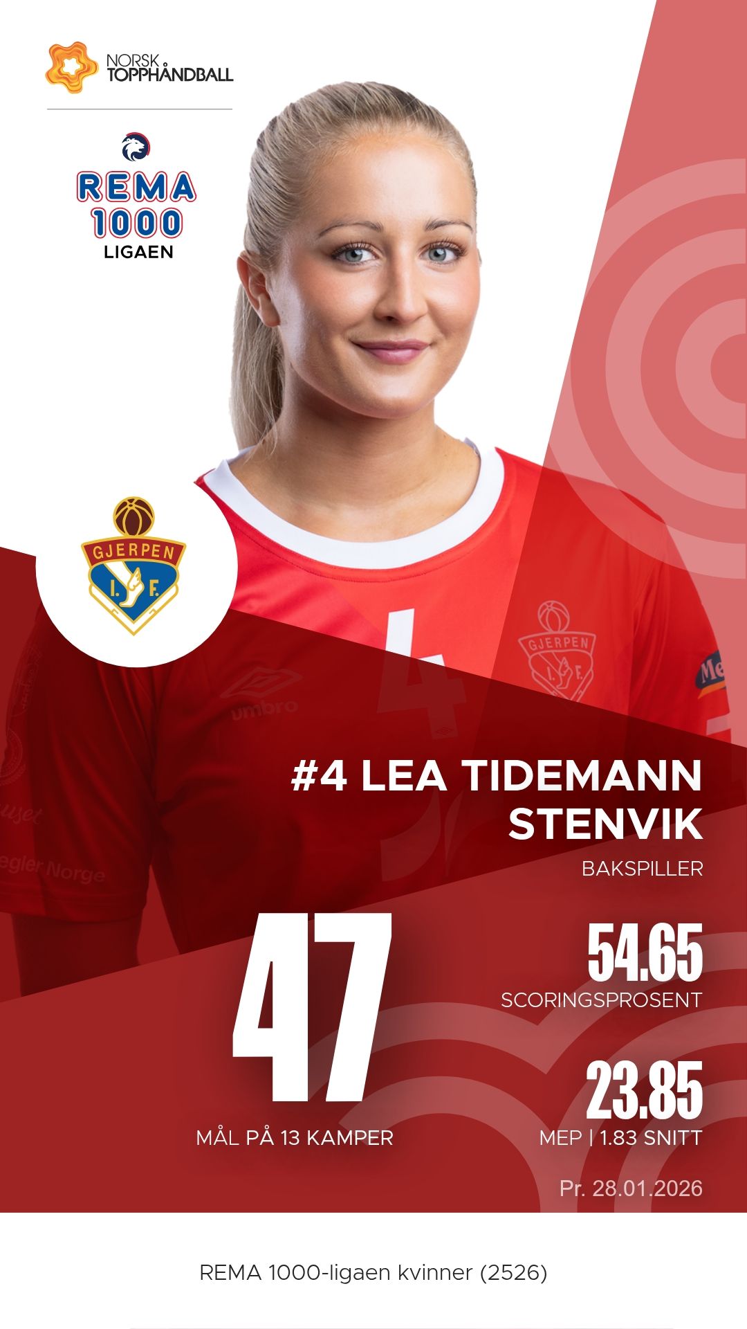 Lea Tidemann Stenvik har vært en motor i Gjerpens angrepsspill denne sesongen. Bakspilleren kombinerer kraftige stegskudd med presise pasninger og står med både imponerende måltall og mange assists. Oda Olsen har styrt spillet som en ekte forsvarsmur og Linn Andresen har styrt spillet fra midten i angrep. Disse to kombinert har servert linjespillerne med godt over 100 innspill som har gitt mange gode avslutninger fra seksmeteren. I tillegg har målvakt Mia Stensland vært en bauta bakerst, med over 150 redninger hittil i sesongen har hun reddet laget i flere jevne oppgjør. Disse fire blir nøkkelspillere når Gjerpen skal forsøke å sikre to nye poeng på hjemmebane.